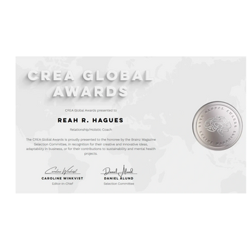 Reah recieved the CREA Global Award via Brainz magazine in 2025! This award is a recognition program by Brainz Magazine that honors top entrepreneurs, leaders, and innovators who have demonstrated creativity, innovation, and resourcefulness, particularly in sustainability and mental health